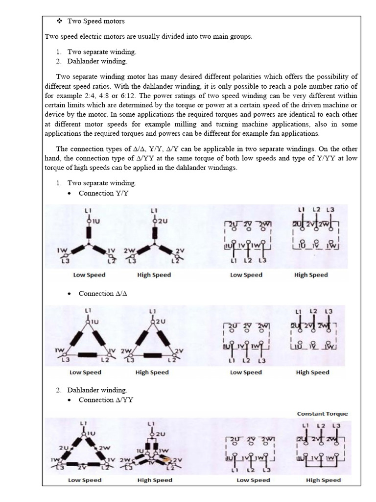 for example 2:4, 4:8 or 6:12. The power ratings of two speed winding can be very different within