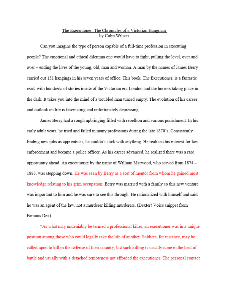Executioner” which was a memoir from 1852 - 1913. After he changed his life, he wrote a new