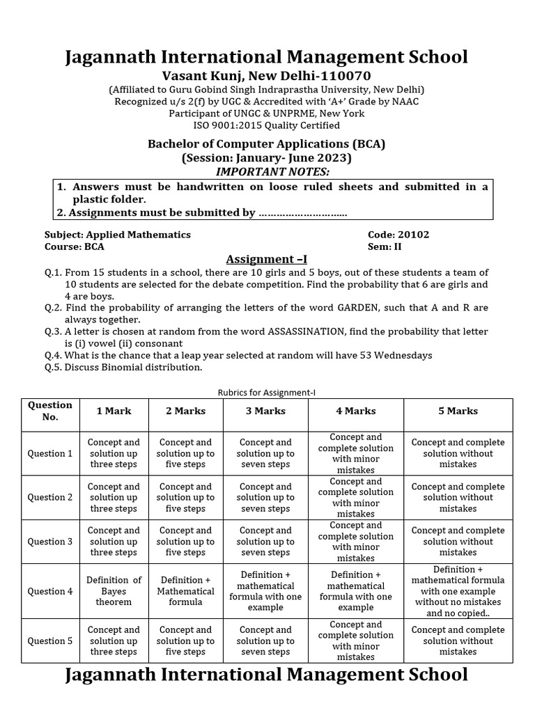 1. Answers must be handwritten on loose ruled sheets and submitted in a