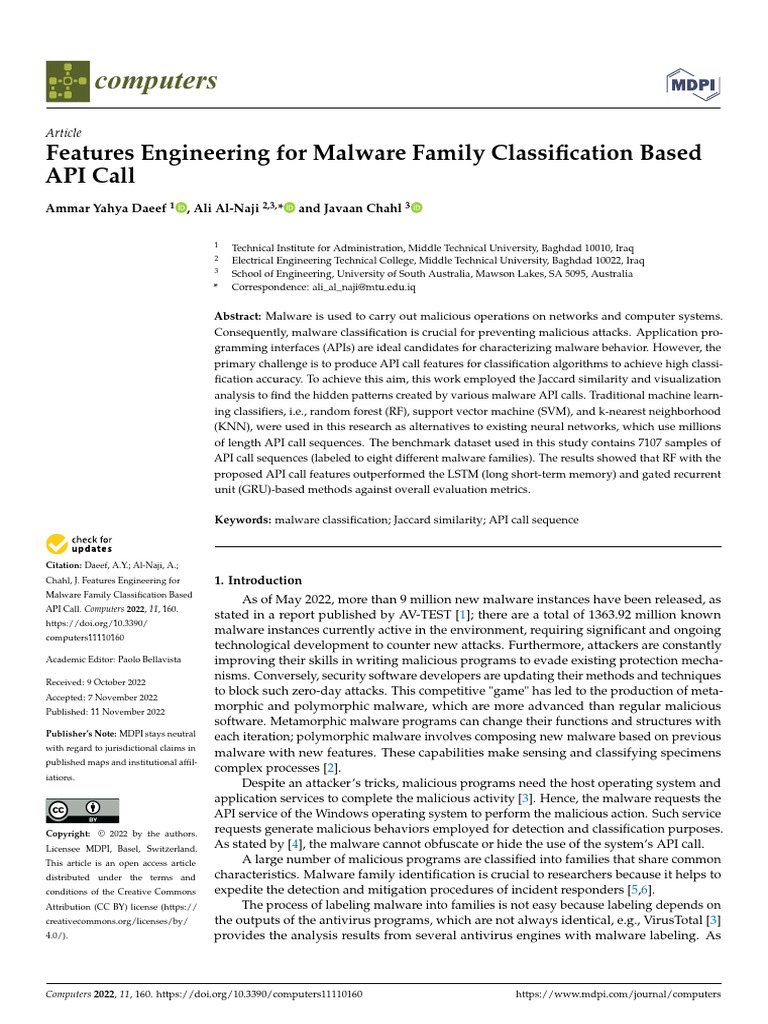 Abstract: Malware is used to carry out malicious operations on networks and computer systems.