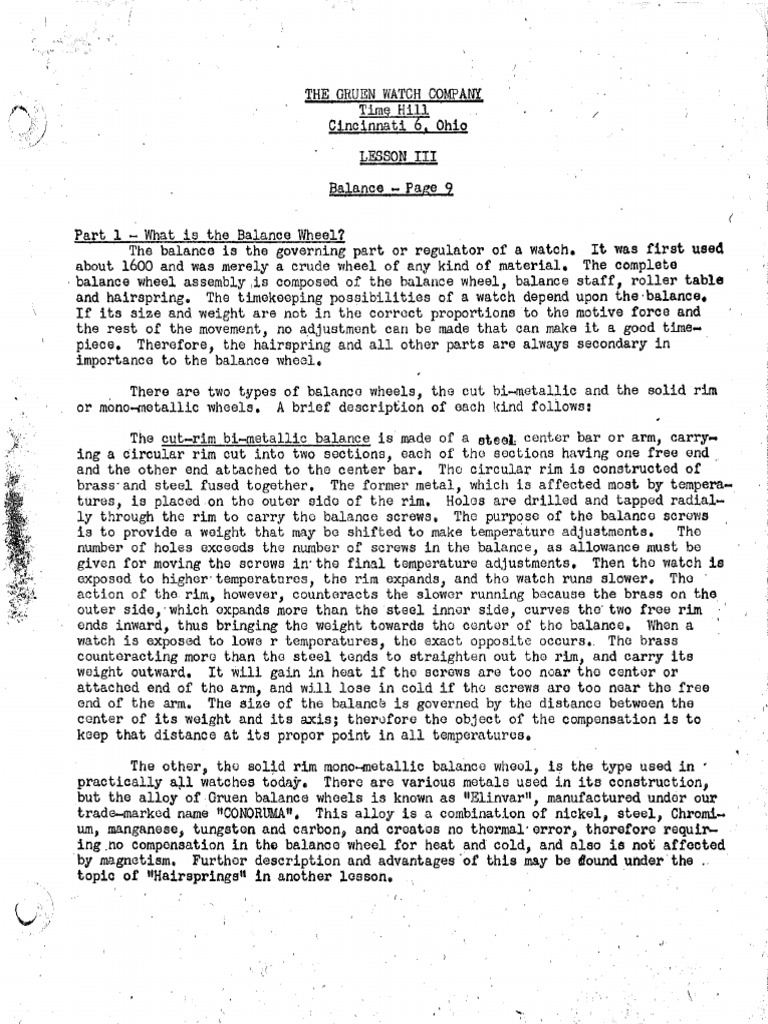 but the alloy of Gruen balance wheels is known as 11 Elinvar 11 , manufactured under our