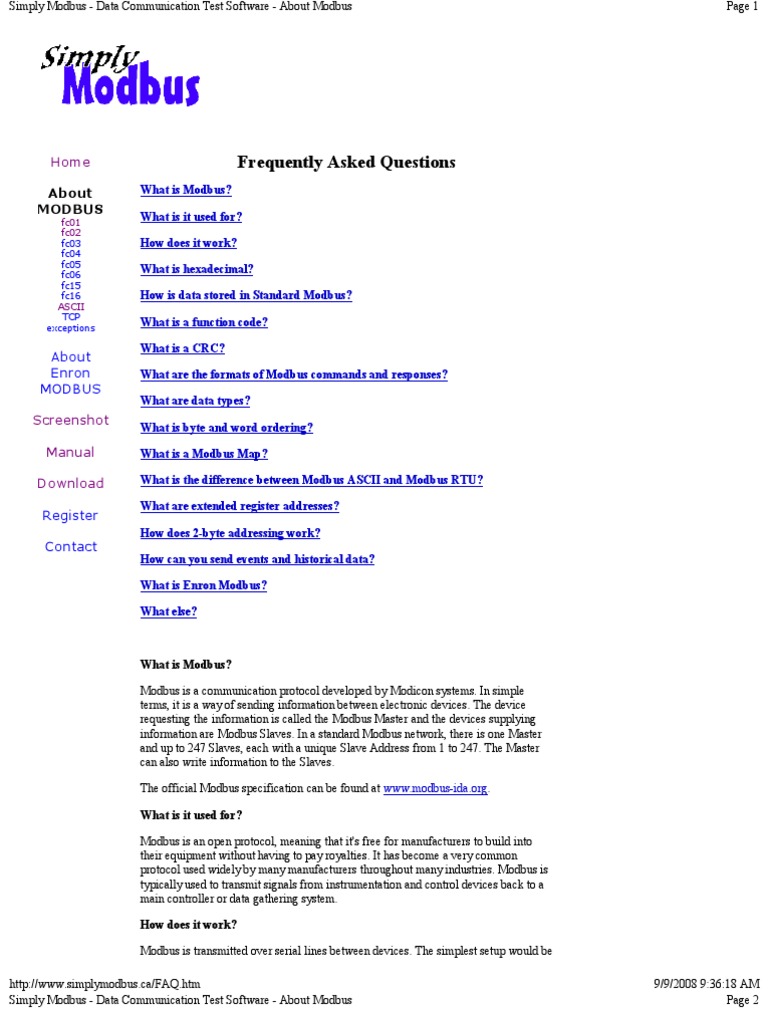 Simply Modbus - Data Communication Test Software - About Modbus Page 2