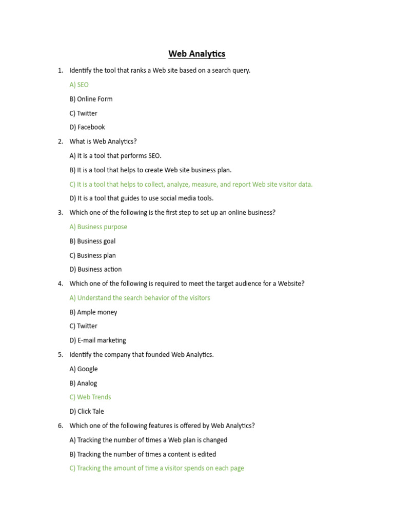 Web Analytics Quiz and Key Concepts