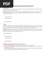 differences between structure and union in C is as follows: