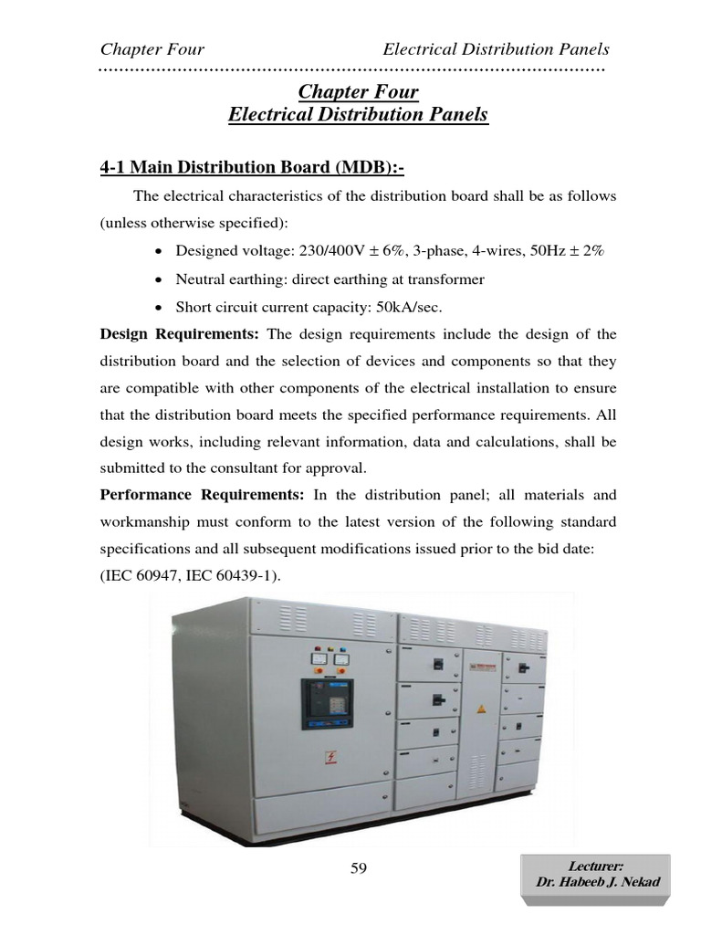 4-1-2 Bus-bars, Wiring, and Earthing:-
