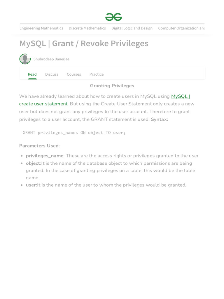 1. Granting more than one Privilege to a User in a Table: To grant multiple