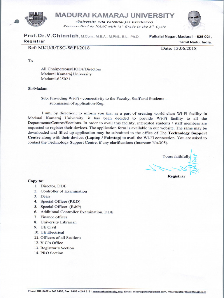 and conditions laid down by MKU and hereby take-up the responsibility for any violation that would be