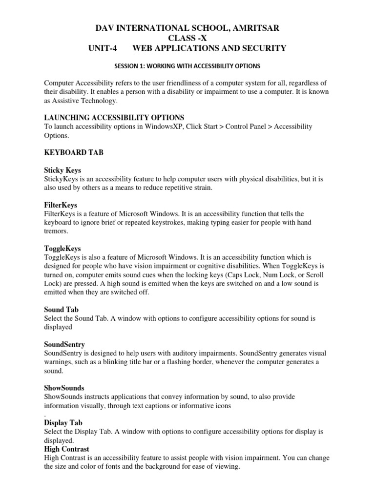 SESSION 1: WORKING WITH ACCESSIBILITY OPTIONS