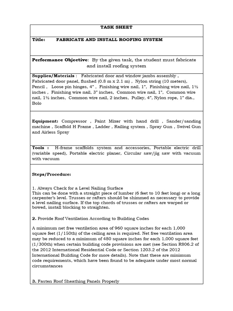 Title: FABRICATE AND INSTALL ROOFING SYSTEM