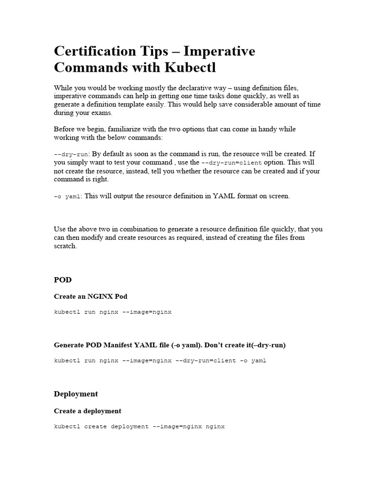 --dry-run: By default as soon as the command is run, the resource will be created. If
