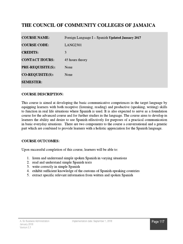 COURSE NAME: Foreign Language I - Spanish Updated January 2017