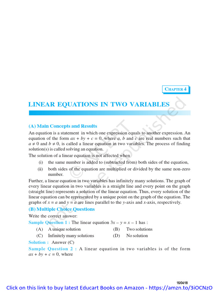 LINEAR EQUATIONS IN TWO VARIABLES