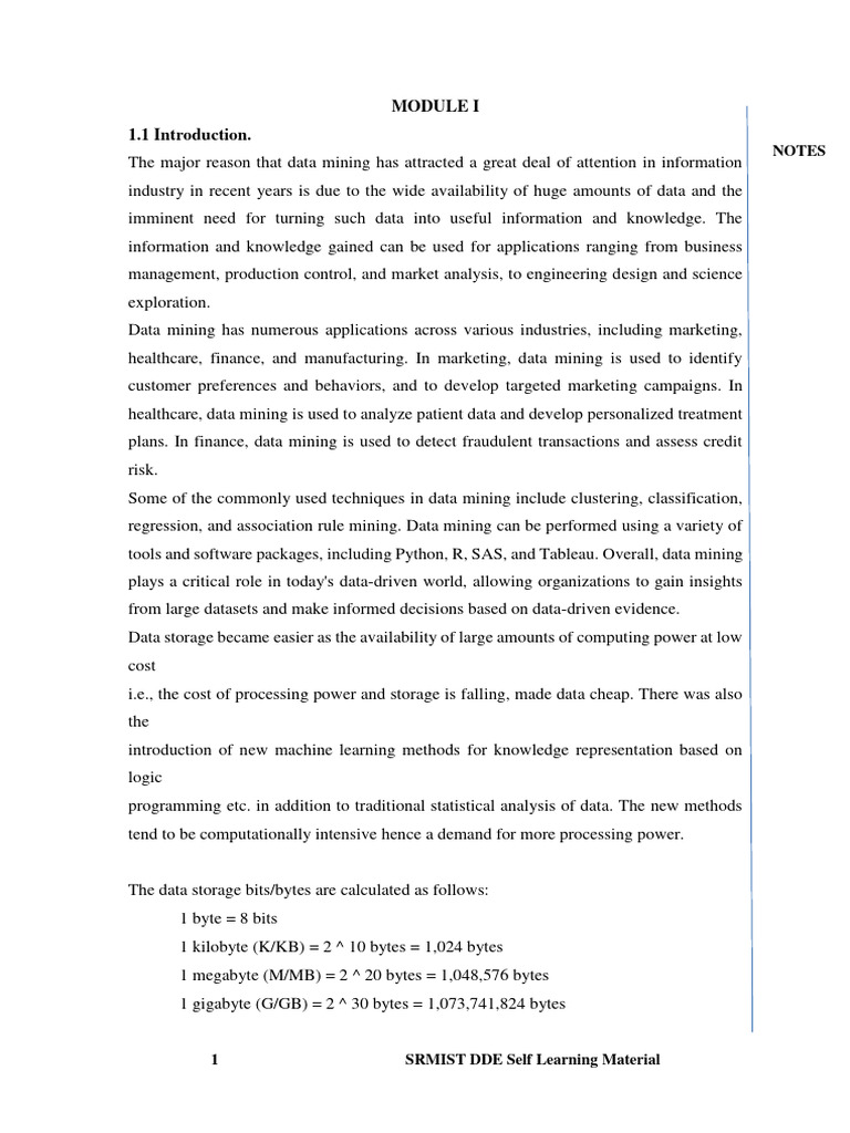 NOTES Data mining is the process of discovering patterns, trends, and insights from large