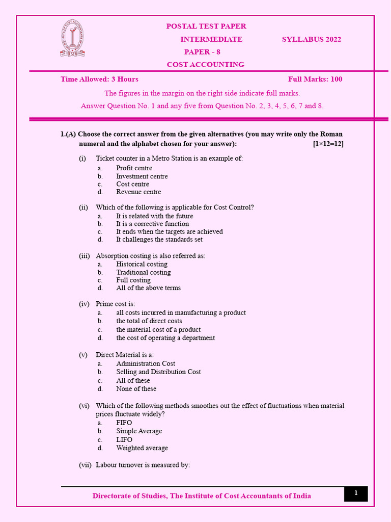 8.(a)(i) Explain the objective of Cost Accounting Standard Board.