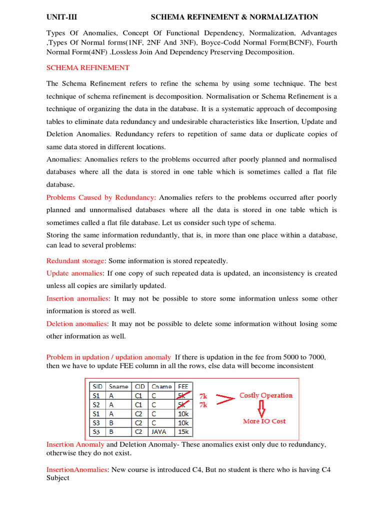 UNIT-III SCHEMA REFINEMENT & NORMALIZATION