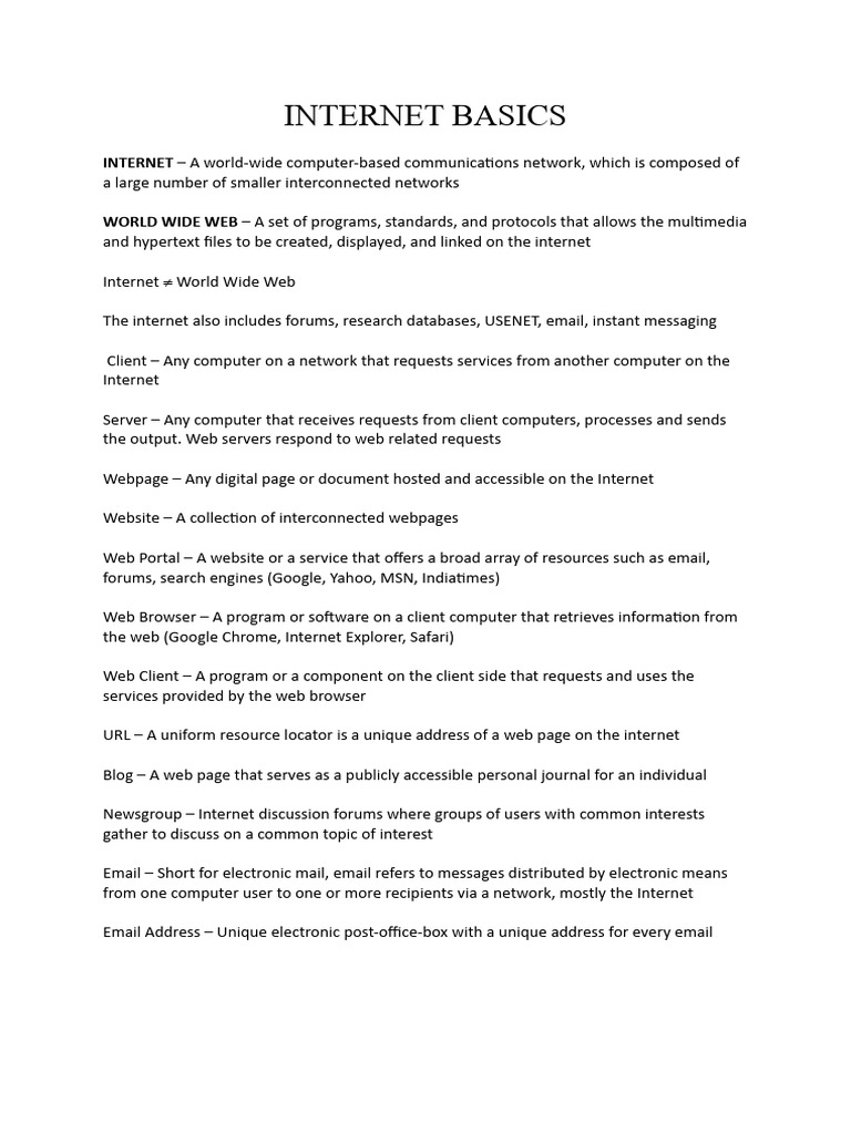 INTERNET – A world-wide computer-based communications network, which is composed of