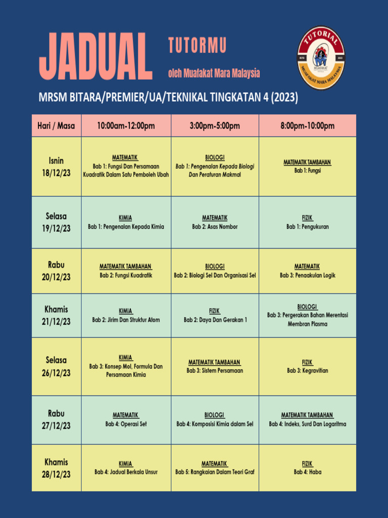 MRSM BITARA/PREMIER/UA/TEKNIKAL TINGKATAN 4 (2023)