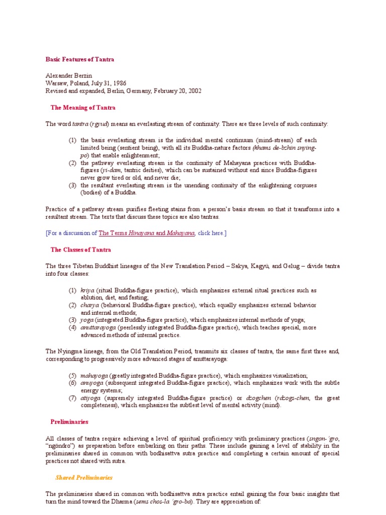 Basic Features of Tantra Alexander Berzin Warsaw, Poland, July 31, 1986 Revised and expanded, Berlin, Germany,