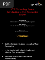This document includes best practices to consider before implementing automated software testing. These best practices are strategic and are applicable regardless of the automation tool you use. Preparing for Automation Set realistic expectations