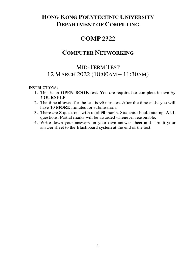 1. This is an OPEN BOOK test. You are required to complete it own by