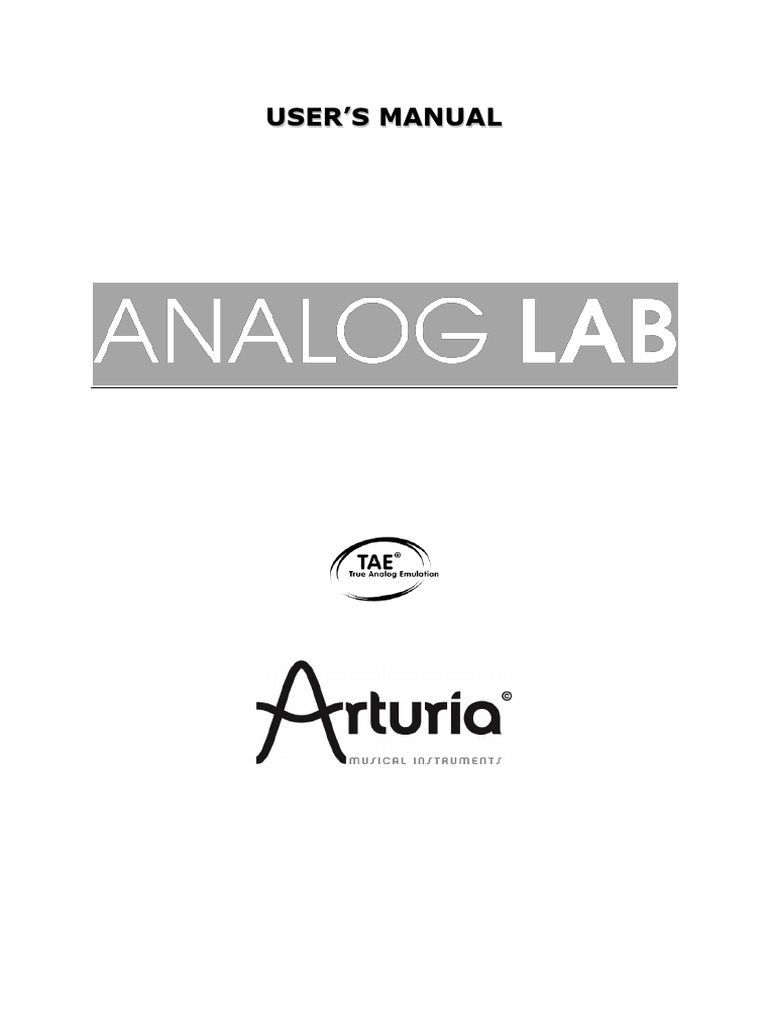 This manual covers the features and operation of Arturia’s Analog Lab, a software