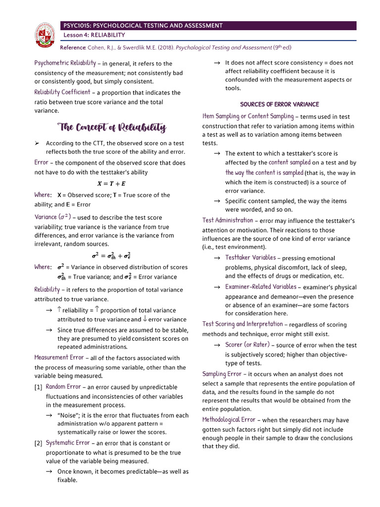 𝝈𝟐 = 𝝈𝟐𝒕𝒉 + 𝝈𝟐𝒆 → Testtaker Variables
