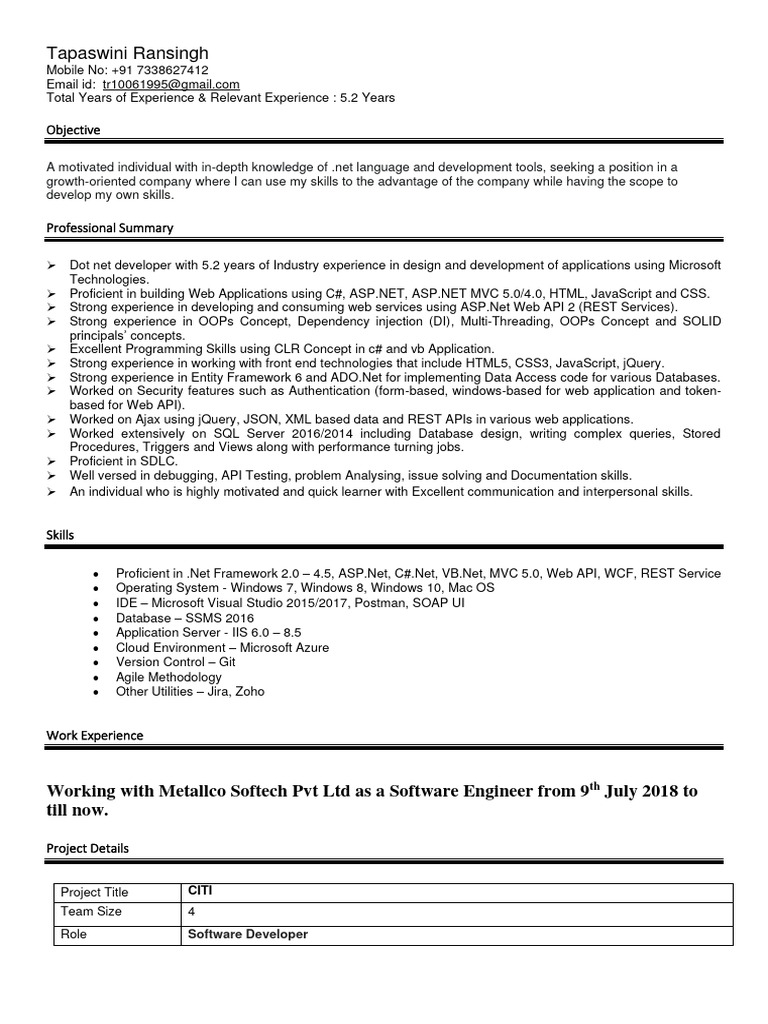 • Proficient in .Net Framework 2.0 – 4.5, ASP.Net, C#.Net, VB.Net, MVC 5.0, Web API, WCF, REST Service