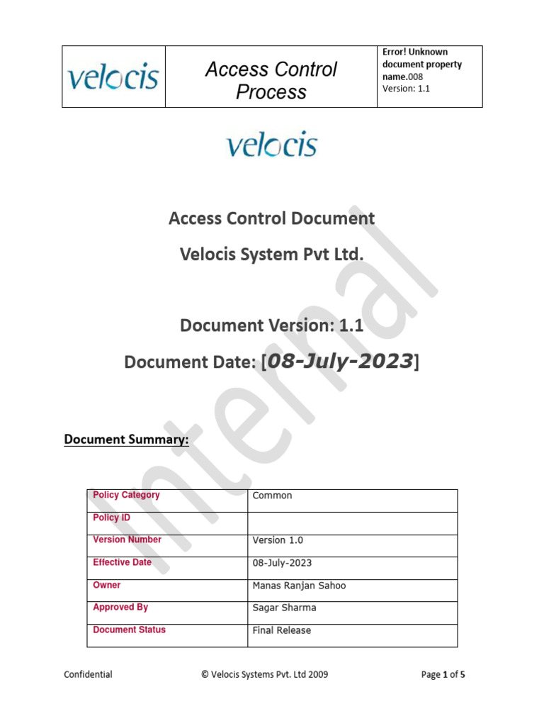 Confidential © Velocis Systems Pvt. Ltd 2009 Page 1 of 5