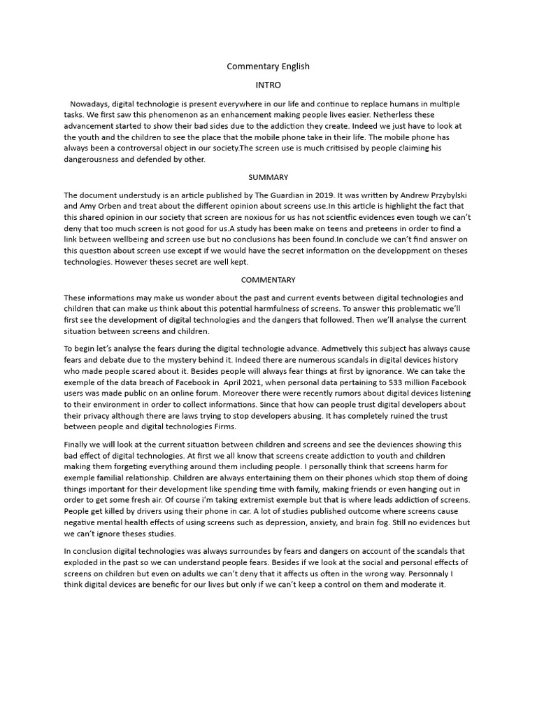 Commentary English