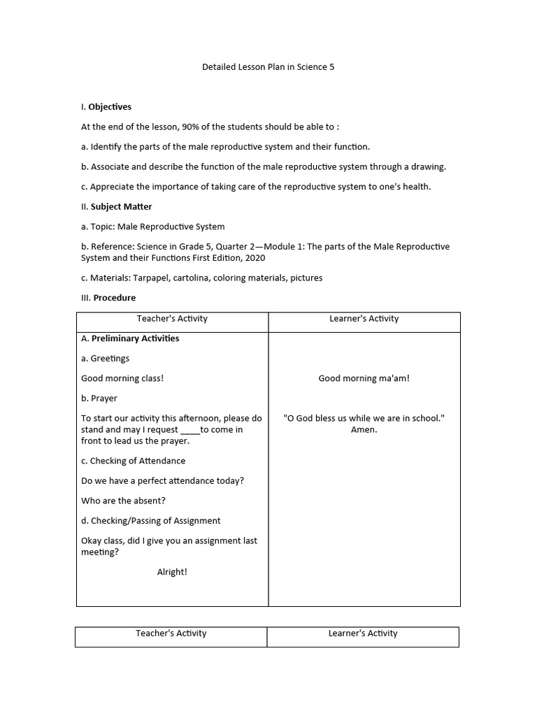 Detailed Lesson Plan in Science 5