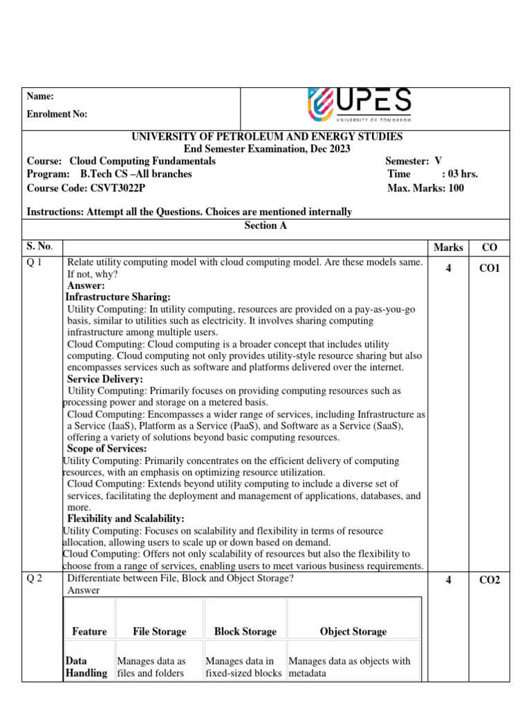 Q2 Differentiate between File, Block and Object Storage? 4 CO2