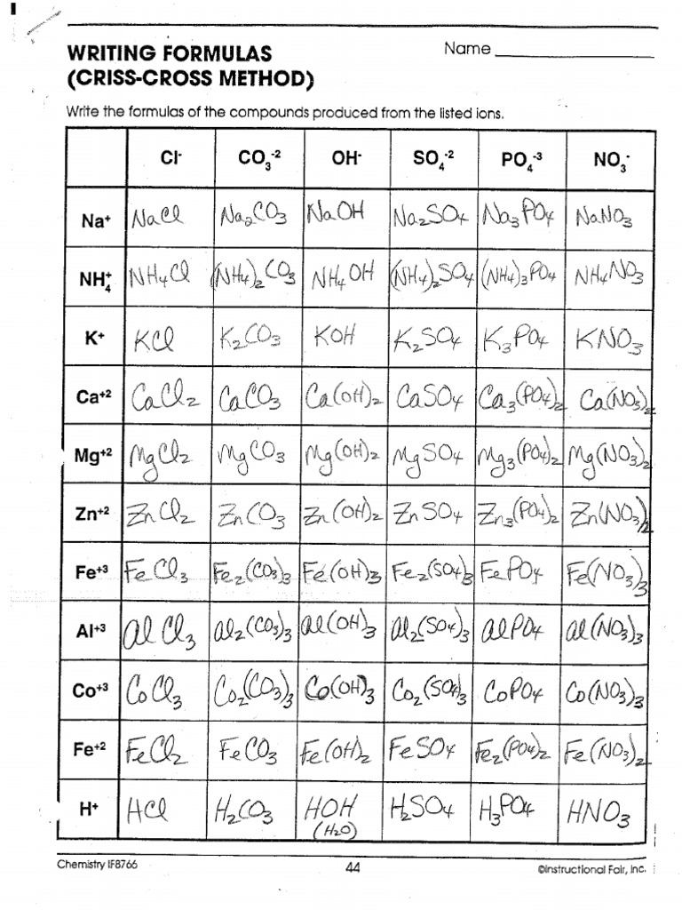 ‘Chemistry 1F8765 i 45 ‘instructional Fair, Ine.WRITING FORMULAS FROM NAMES = ‘No™e