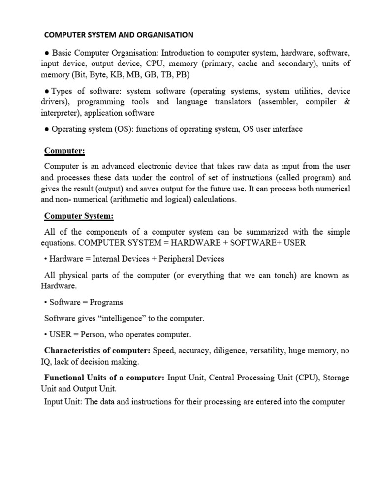 ● Basic Computer Organisation: Introduction to computer system, hardware, software,