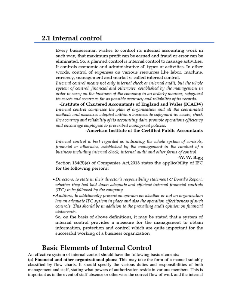 (f) Authorization: Under the internal control system, all the activities must be authorized by