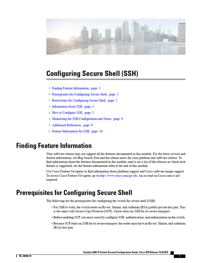 device authentication and encryption. The SSH client enables a Cisco device to make a secure, encrypted