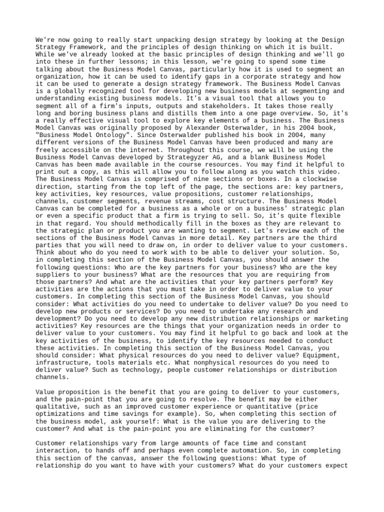 it can be used to generate a design strategy framework. The Business Model Canvas