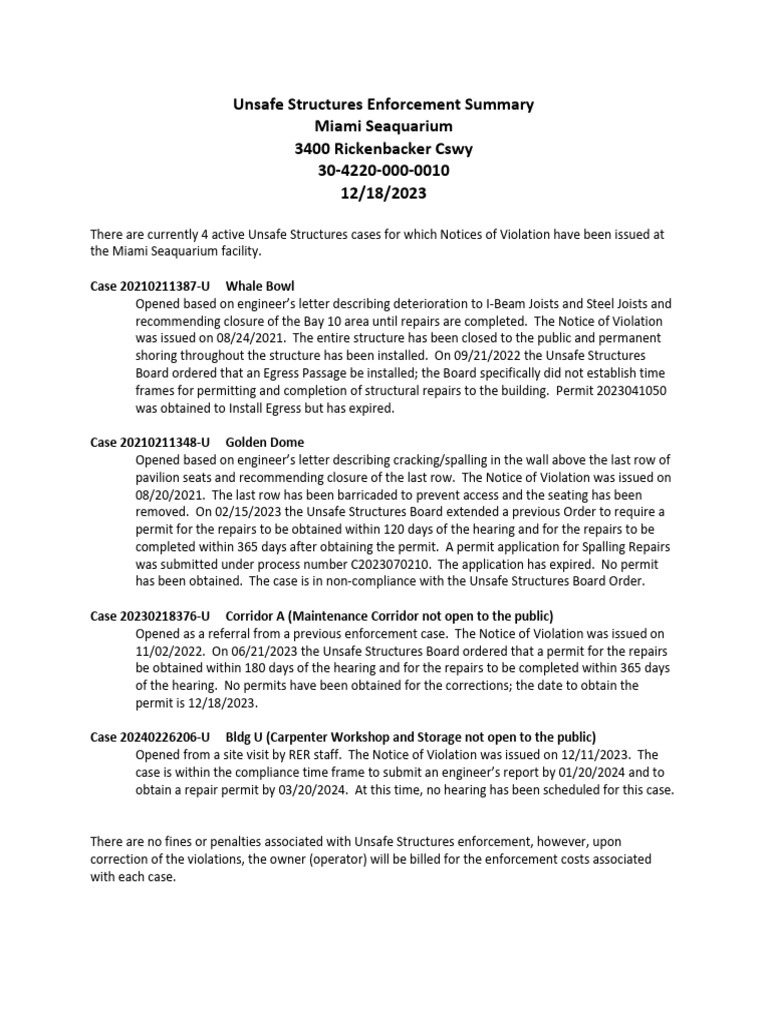 There are currently 4 active Unsafe Structures cases for which Notices of Violation have been issued at