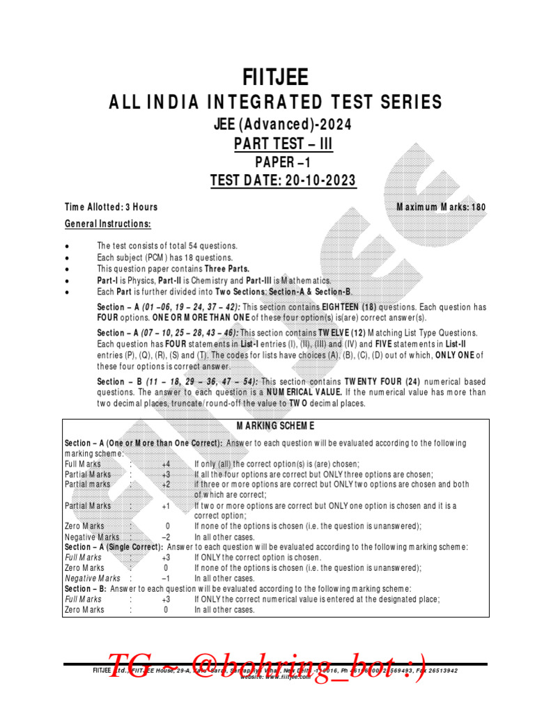Fiitjee Aits 2024 Practice Paper's