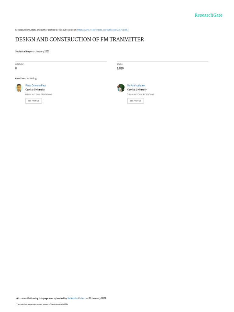 Mahmudur Rahman Sarkar , Proma Sarkar , hereby declare that the work entitled design of an fm