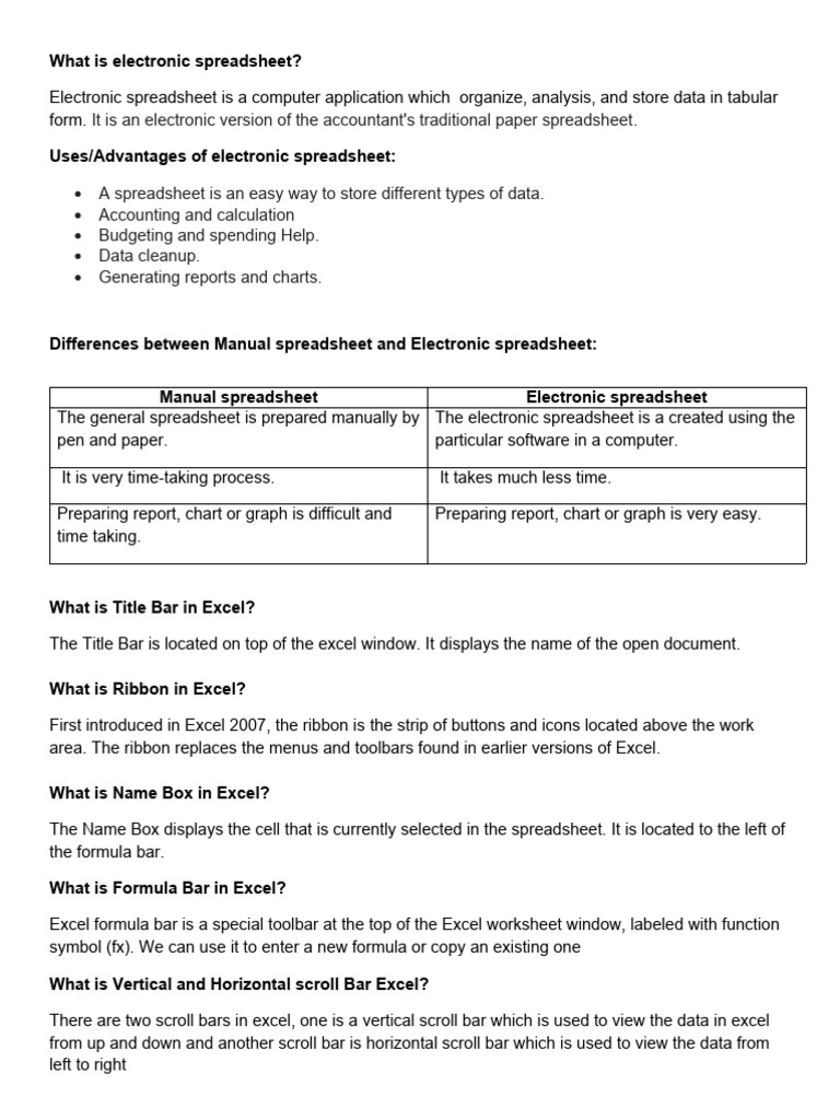 Differences between Manual spreadsheet and Electronic spreadsheet: