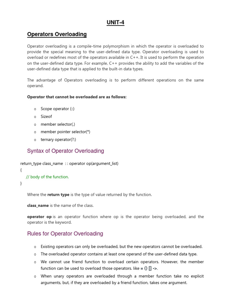 o Existing operators can only be overloaded, but the new operators cannot be overloaded.
