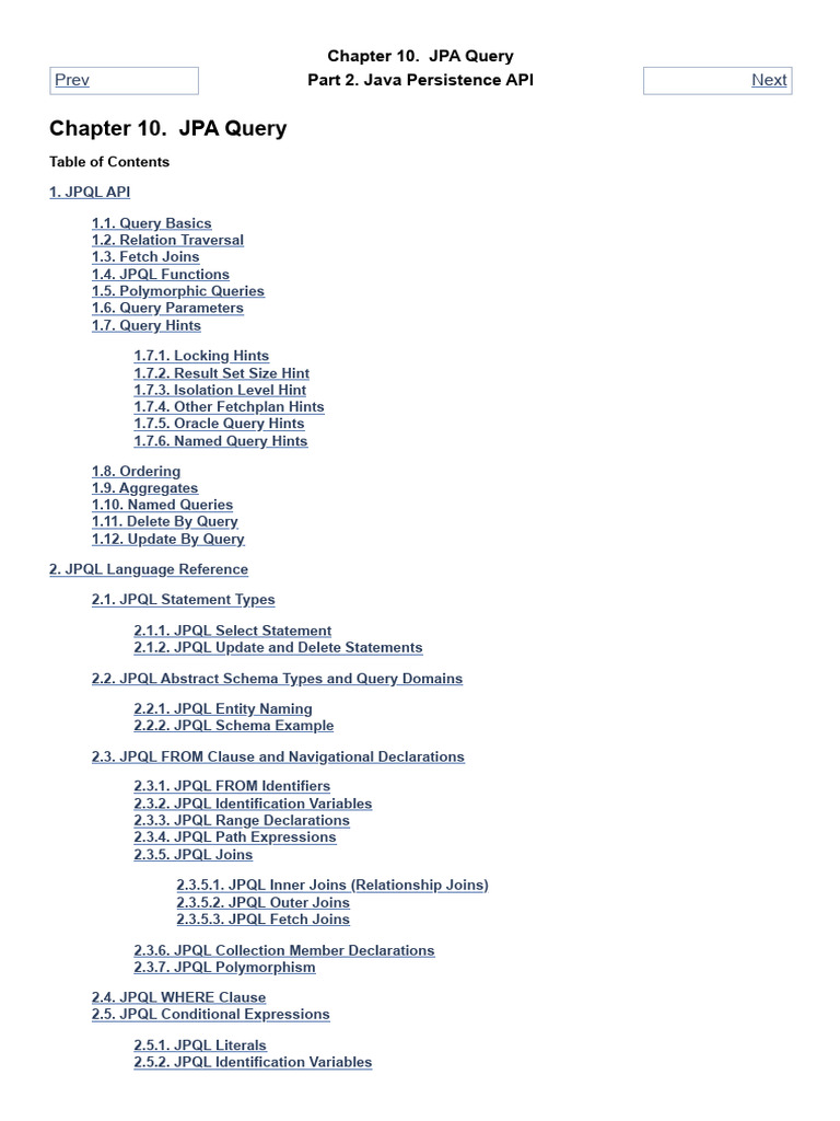 The API for executing JPQL queries will be discussed in Section 1, “ JPQL API ”, and a full language reference will