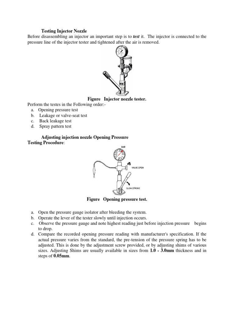 c. Observe the pressure gauge and note highest reading just before injection pressure begins
