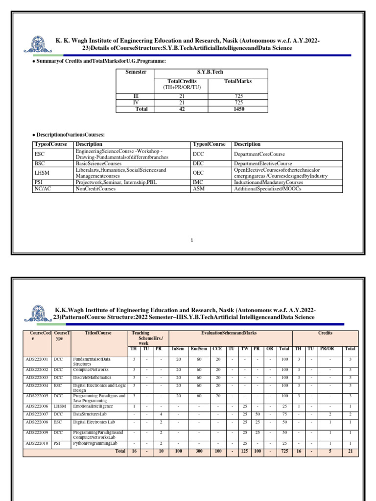 23)PatternofCourse Structure:2022 Semester–IIIS.Y.B.TechArtificial IntelligenceandData Science
