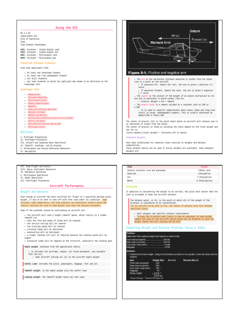 Weight and Balance In addition to considering the weight to be carried, the pilot must ensure that the