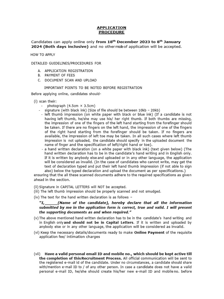 (v) The above mentioned hand written declaration has to be in the candidate’s hand writing and