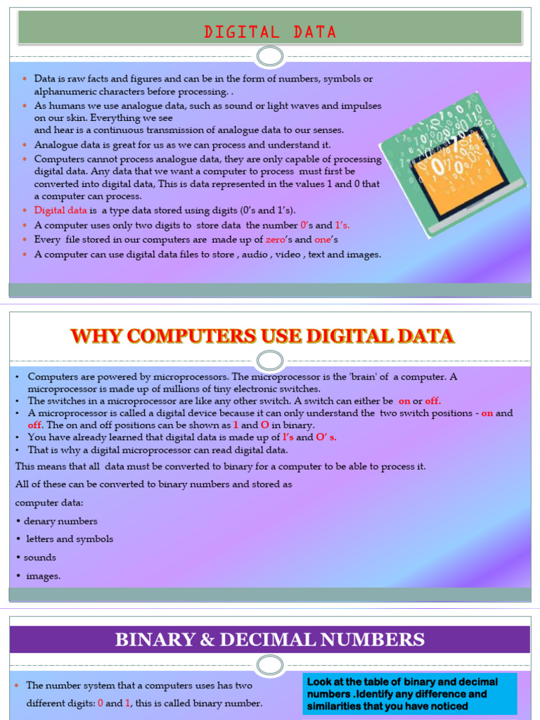 A computer uses only two digits to store data the number 0’s and 1’s.