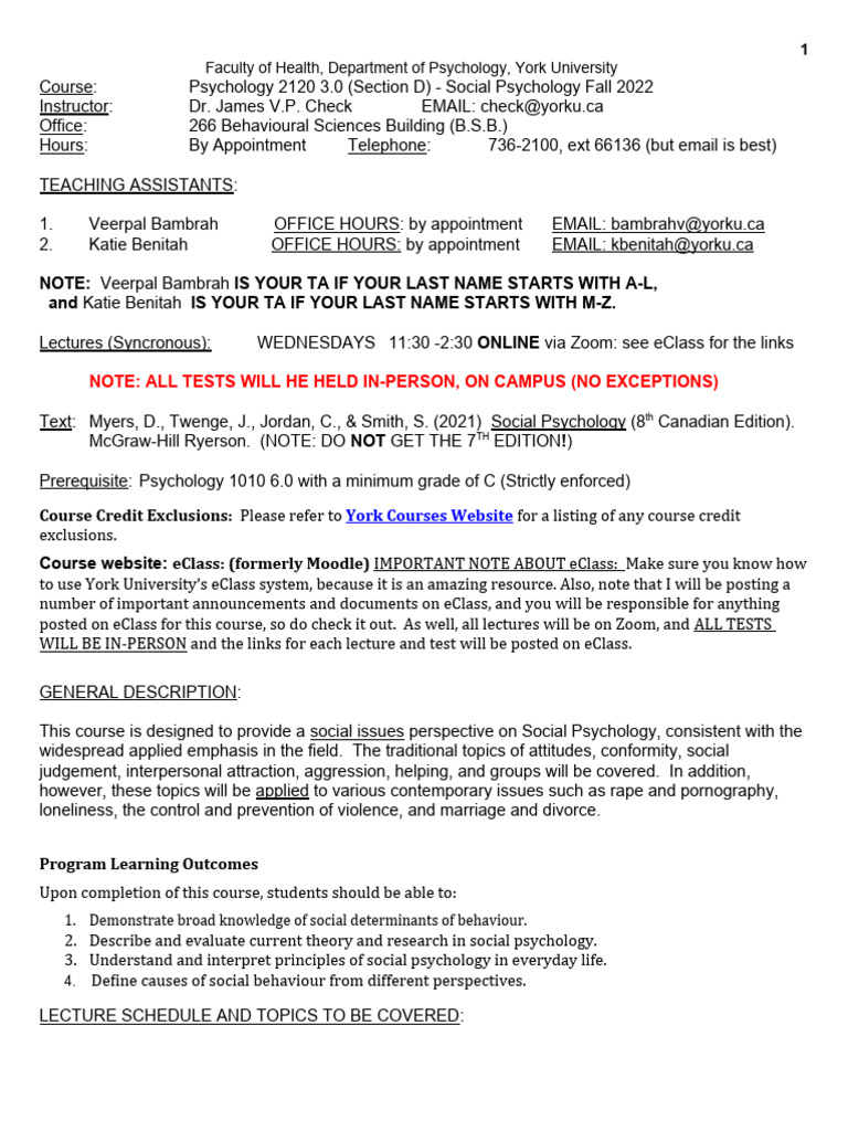 Instructor: Dr. James V.P. Check EMAIL: check@yorku.ca