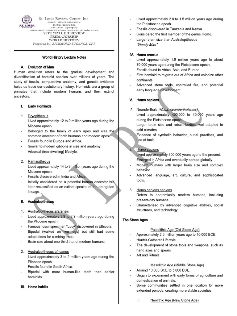 SEPT 2023 L.E.T REVIEW - Considered the first member of the genus Homo.