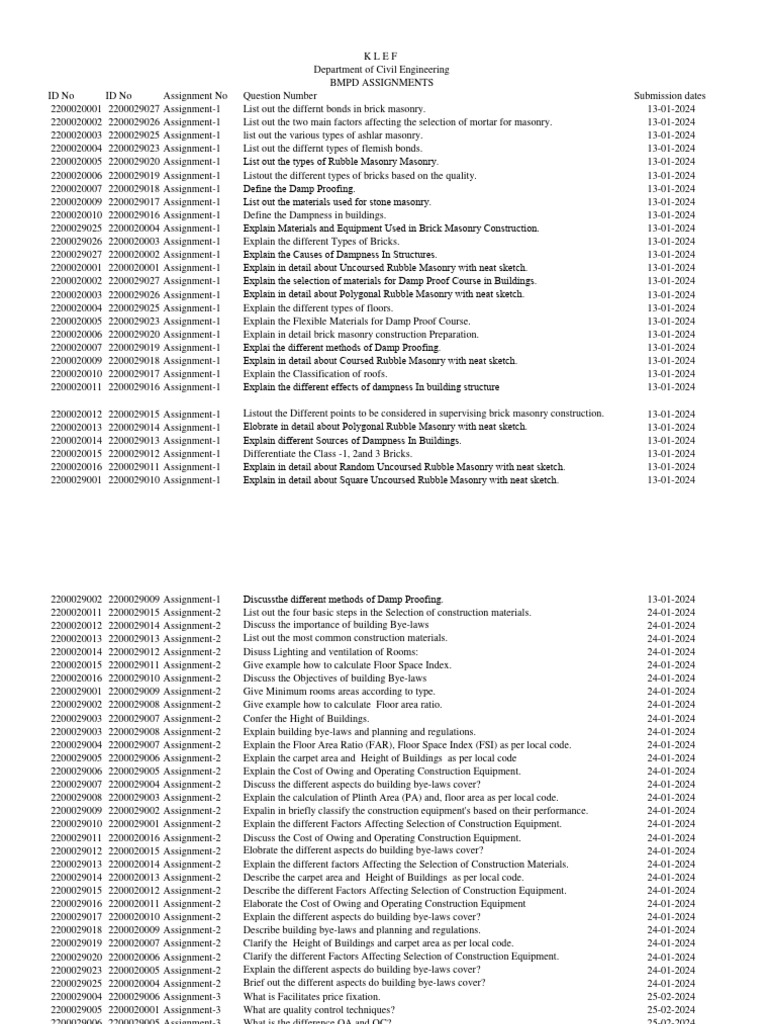 2200020012 2200029015 Assignment-1 Listout the Different points to be considered in supervising brick masonry construction. 13-01-2024